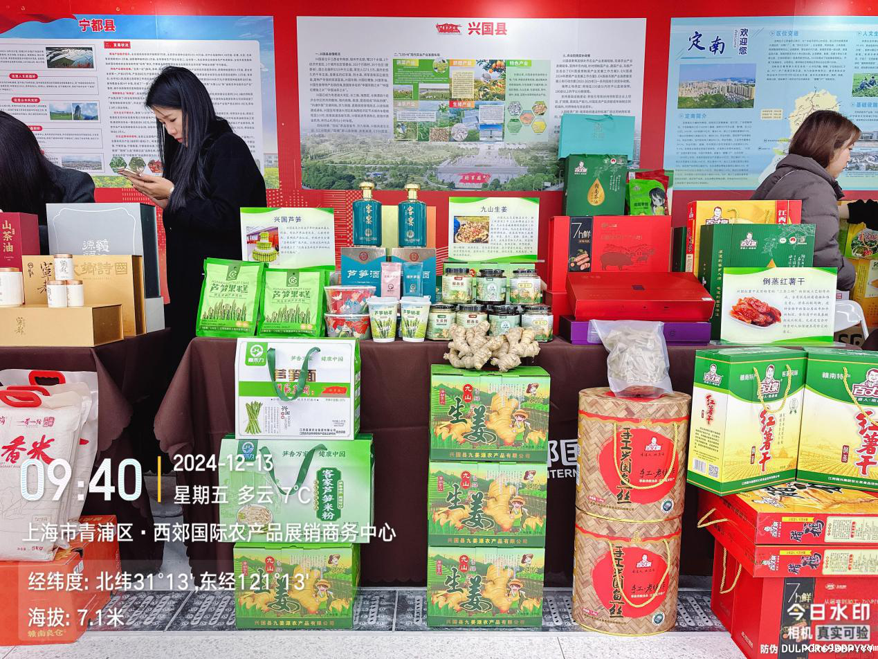 12月13-15日,2024上海西郊国际特色农产品迎新巡回展赣州展在上海举办,兴国县组织兴国春赐福生态茶场、兴国县九姜源农产品有限公司、江西国兴集团百丈泉食品饮料有限公司、江西国康农业集团有限公司等企业参展,兴国白茶、富硒芦笋、鱼丝、烤肠、灰鹅、红薯干、九山生姜等10款极具兴国特色的优质农产品纷纷亮相,吸引了不少上海客商和市民亲身体验品鉴。现场人潮涌动,纷纷驻足选购。此次活动不仅全面宣传展示了兴国县优质农产品,提升了农产品品牌知名度和市场竞争力,更促进了农产品产销精准对接,拓宽了长三角市场。