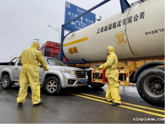 “快,各小组注意,危化品运输车发生事故,立即启动应急预案!”12月27日上午,随着一声急促的指令,兴国县危化品运输车辆道路交通事故应急演练在工业园区正式拉开序幕。演练现场,一辆模拟装载危化品的运输车辆在行驶途中突发“事故”,与对向行驶的车辆发生碰撞,情况十分危急。接到报警后,兴国县公安交管、应急管理、消防、医疗等多部门迅速响应,第一时间赶赴现场展开救援。