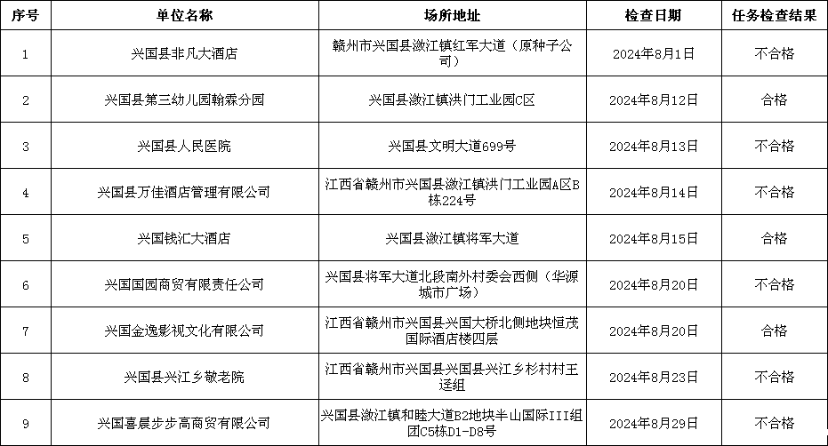 2024年8月份江西省“双随机、一公开”消防监管信息系统抽中单位检查结果公示