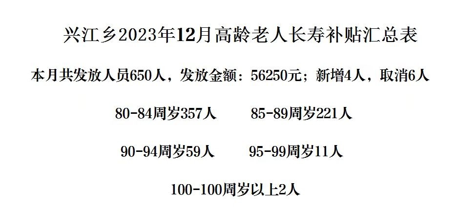 【养老服务】兴江乡2023年12月份高龄老人长寿补贴发放公示