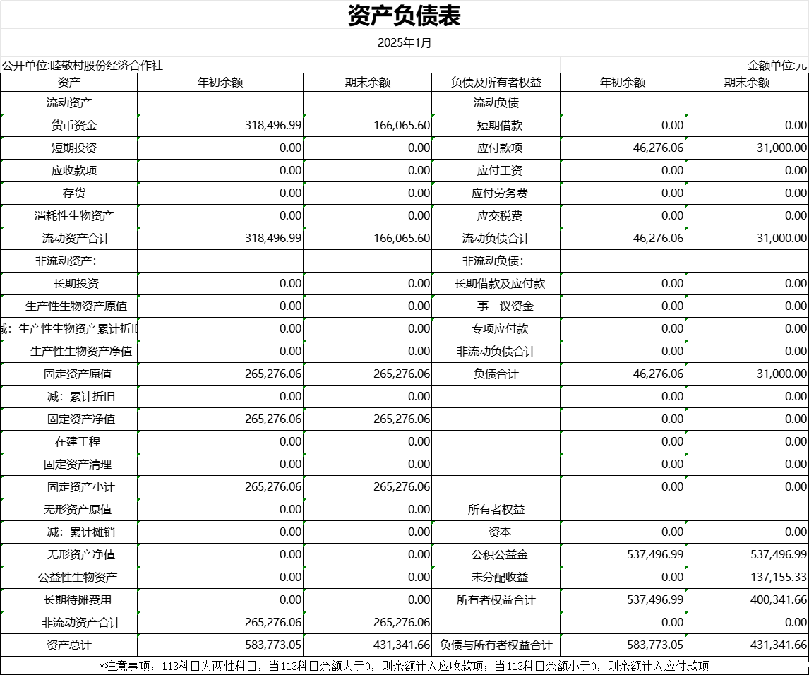 睦敬村股份经济合作社2025年1月收入支出明细表公示