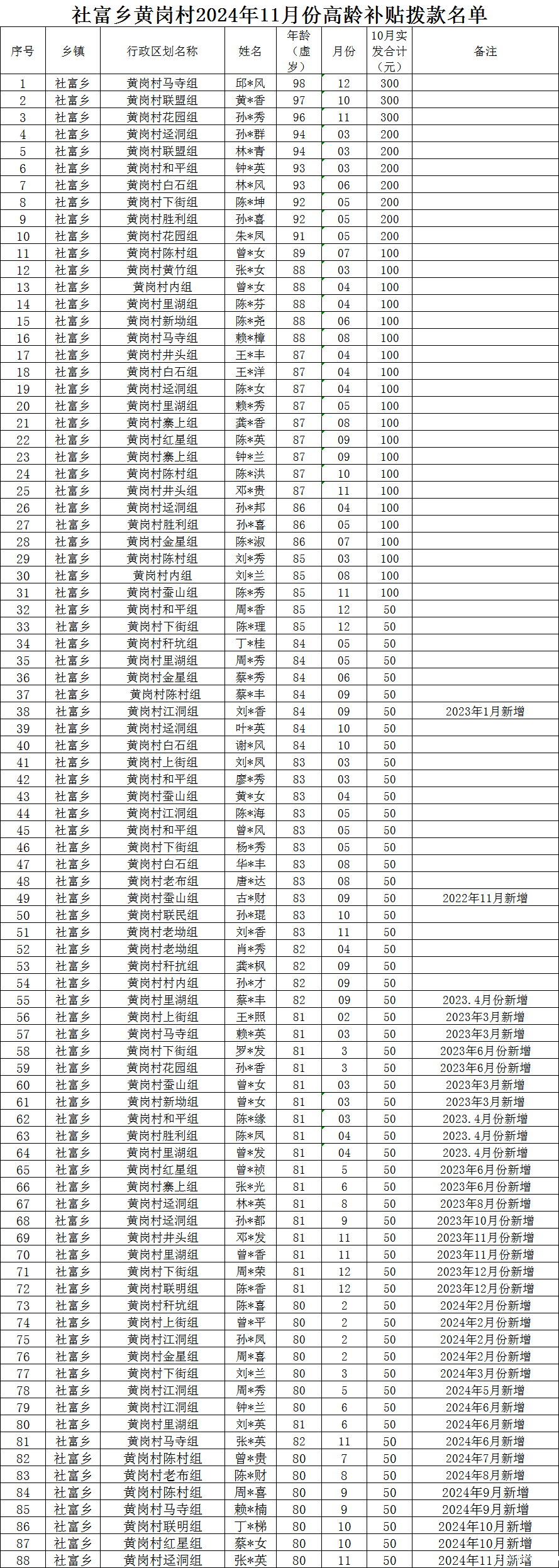 【养老服务】黄岗村2024年11月高龄老人长寿名单