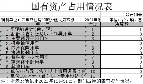 截止202112月31日,本单位国有资产占用情况见公开10表《国有资产占用情况表》。其中车辆中的其他用车主要是人防指挥车。