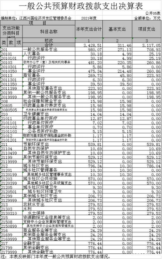 4、基本支出:指为保障机构正常运转、完成日常工作任务而发生的人员支出和公用支出。