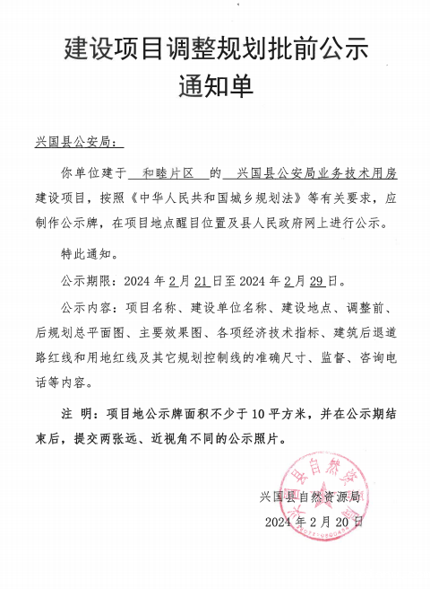 兴国县公安局业务技术用房规划建筑设计方案调整公示
