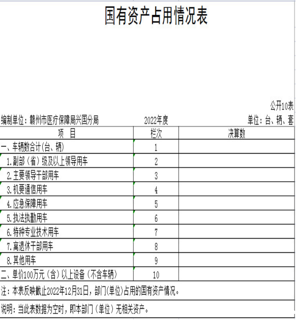 截止2022年12月31日,本单位国有资产占用情况见公开10表《国有资产占用情况表》。本单位无其他用车。