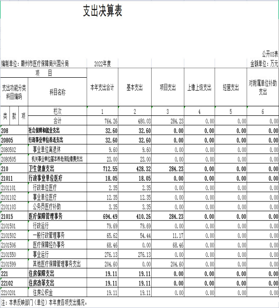 本单位2022年度支出总计830.3万元,其中本年支出合计 764.26万元,较2021年增加193.56万元,增长34%,主要原因是:智慧医保“村村通”设备购置支出;年末结转和结余 66.04 万元,较2021年减少43.01万元,下降39%,主要原因是:实有资金结余减少。