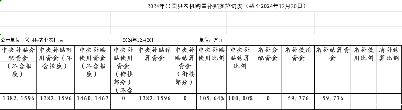 2024年兴国县农机购置补贴实施进度(截至2024年12月20日)