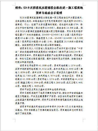 S219兴国蕉坑至莲塘段公路改建一期工程用地预审与选址批前公示