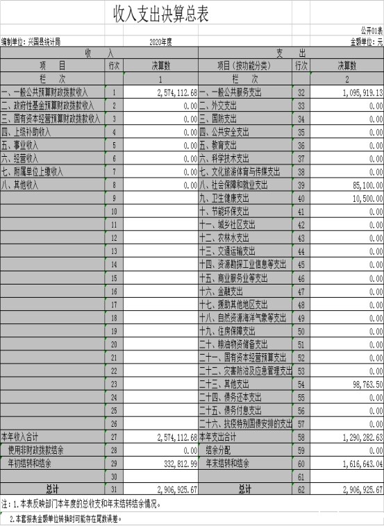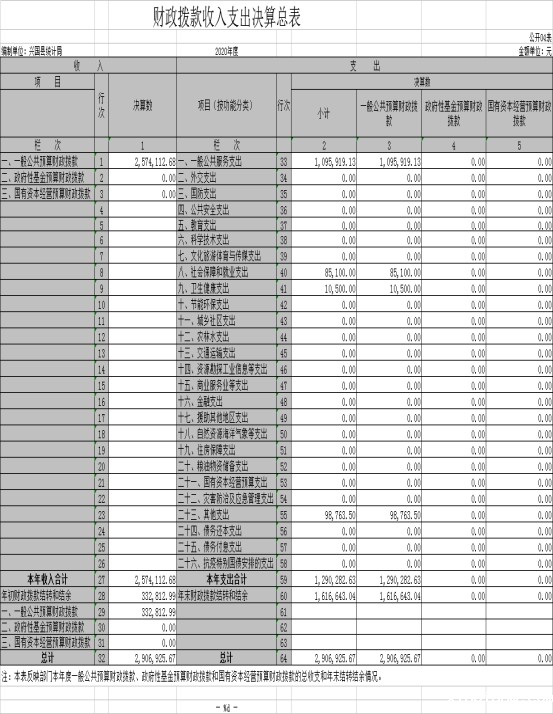 纳入本套单位决算汇编范围的单位共 1 个,为兴国县统计局机关。兴国县统计局总编制21人(含统计普查中心)其中:行政编制8人、事业编制13人。本单位2020年年末实有人数 22 人,其中在职人员 17 人,退休人员 5 人。