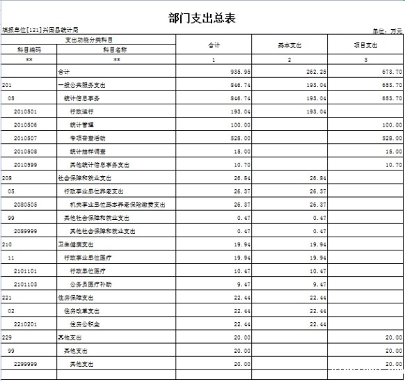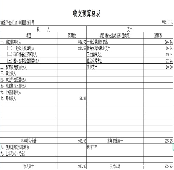 第三部分 兴国县统计局单位预算表