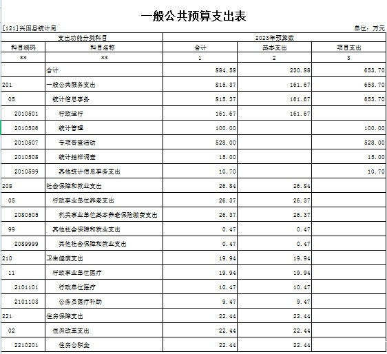 第三部分 兴国县统计局2023年单位预算表