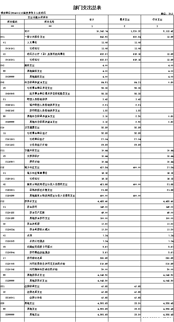 本年支出的具体构成为:基本支出1230.32万元,占11.89%;项目支出9113.42万元,占88.11%;经营支出 0 万元,占 0.00%;其他支出(对附属单位补助支出、上缴上级支出) 0 万元,占0.00%。