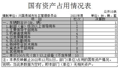 截止2022年12月31日,本部门国有资产占用情况见公开10表《国有资产占用情况表》。其中车辆中的其他用车主要是用于公务使用。