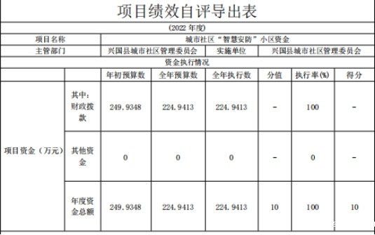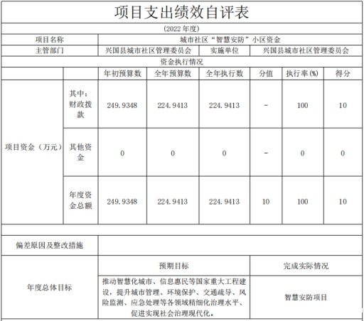 组织对“城市社区‘智慧安防’小区资金”等1个项目开展了部门评价,涉及一般公共预算支出224.94万元,政府性基金预算支出0万元,国有资本预算支出0万元。从评价情况来看,25个小区智慧安防安装;群众生活质量、预防减少犯罪率有所提升。