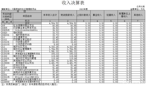 纳入本套部门决算汇编范围的单位共1个,包括:兴国县城市社区管理委员会。