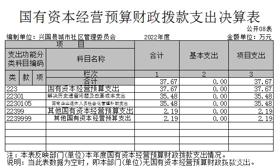 (五)国有资本经营预算支出年初预算数为2.186万元,决算数为37.67万元,完成年初预算的1720%,主要原因是:含有新增项目资金支出。