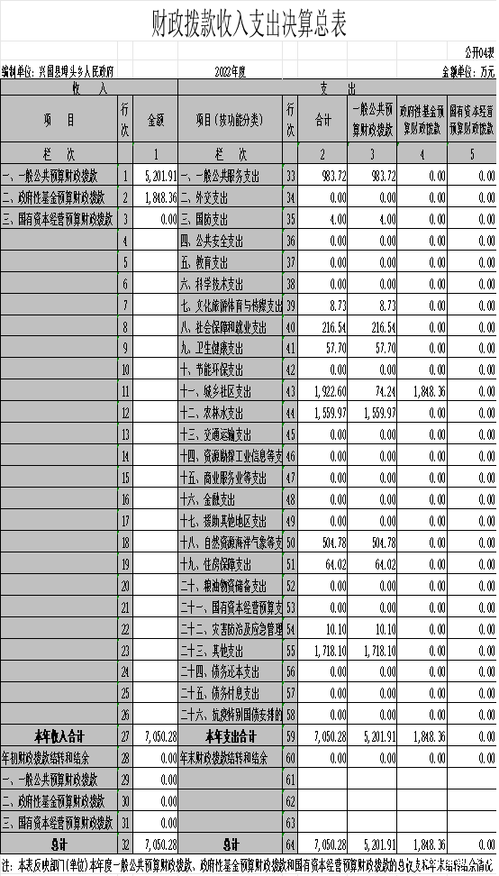 纳入本套部门决算汇编范围的单位共1个,包括:兴国县埠头乡人民政府。
