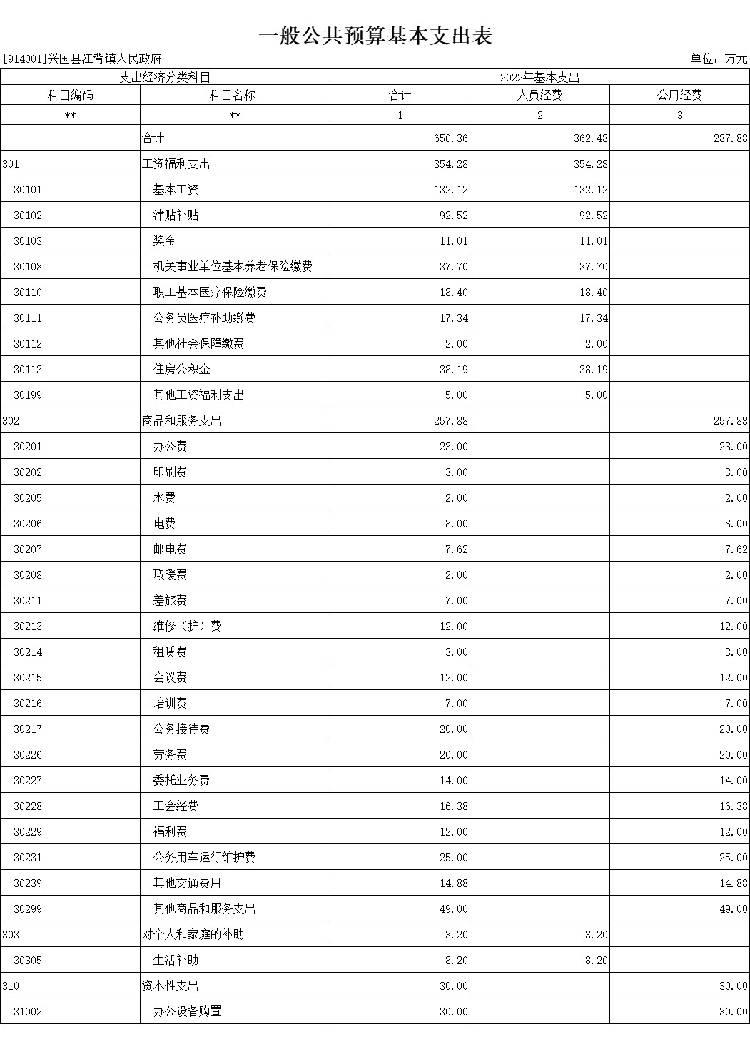 第三部分 兴国县江背镇人民政府2022年部门预算表