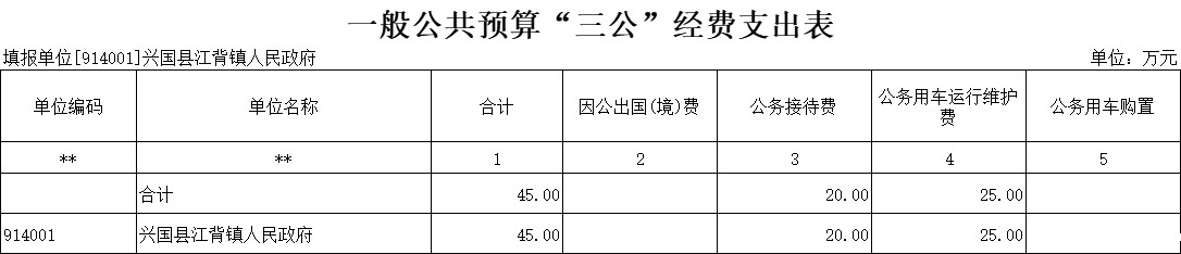 2022年兴国县江背镇人民政府“三公”经费一般公共预算安排45万元。其中: