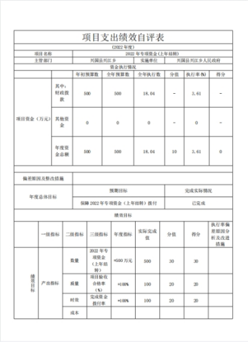 本单位公开2022年兴江乡人民政府项目单位评价报告(见附件)。
