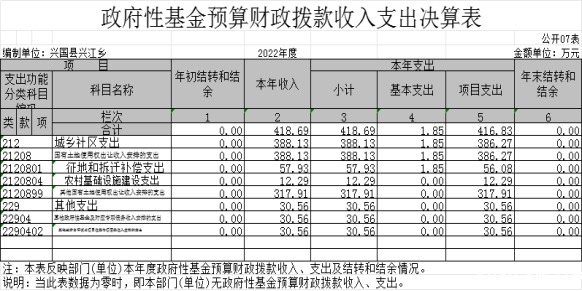 兴国县兴江乡人民政府单位2022年度决算