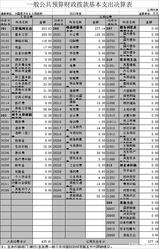 纳入本套单位决算汇编范围的单位共 1 个,包括:兴国县方太乡人民政府。