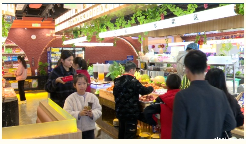 春节期间,我县不少市民选择外出购物、娱乐聚餐,开启消费模式,各商超市场迎来销售旺季。