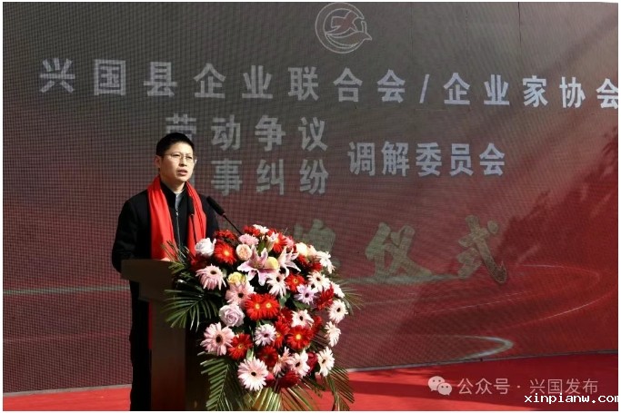 3月17日,兴国县企联企协劳动争议调解委员会、商事纠纷调解委员会揭牌仪式在长征文化艺术中心举行。